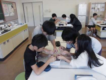 5年生の2時間目は、家庭科の学習でした。出汁入りみそ汁と出汁なしみそ汁を比べました。また、今回使用した「煮干し」に関心をもつ子供たちが多く、煮干しの頭と腹わたを取る作業をすると、煮干しの香りや色等を確かめていました。