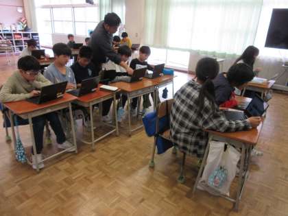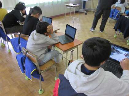 6年生は、総合的な学習の時間に四方の環境や防災等、それぞれが気になる「四方の○○」について調べていました。新たな発見もいろいろあるようです。