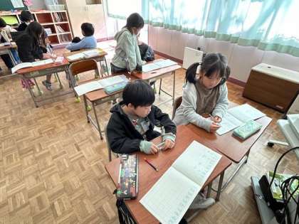 1年生は算数科でくり下がりのある引き算の学習をしています。早く正確に計算できる工夫を考えながら計算練習をしています。どうやって計算したか友だちに上手に説明することもできました。