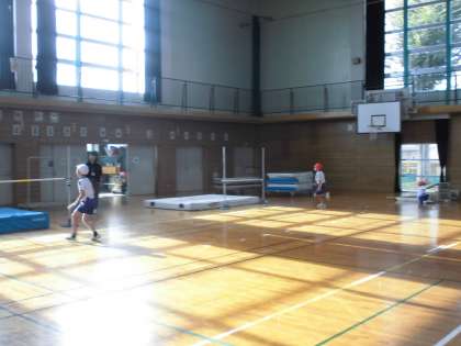 4年生の2時間目は、体育の学習でした。走り高跳びに挑戦していました。助走角度や跳び方を工夫して練習していました。