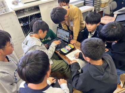 5年生は総合的な学習の時間に、こども園との交流の計画を考えていました。何歳くらいかな、体の大きさはどれくらいかななど想像しながら、どうしたら楽しく交流できるか考えていました。