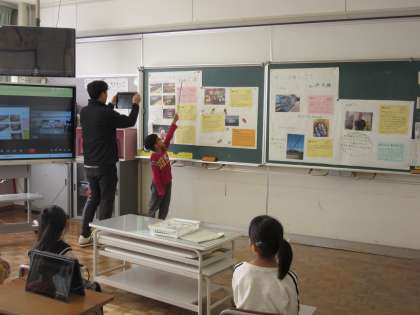 今日2年生は山田小学校の2年生とオンライン交流をしました。前回山田のすてきをいろいろ教えてもらったので、今日は四方のすてきを山田小学校の2年生に伝えました。自信をもって発表する姿もすてきでした。オンライン接続の不具合により、全ての紹介ができませんでしたが、また近い内に交流をする予定にしています。