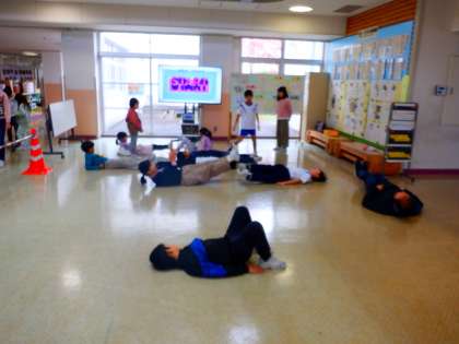 yokaTAP3日目です。体幹トレーニングゾーンでは、個人やペアで、楽しみながら体幹を鍛えていました。