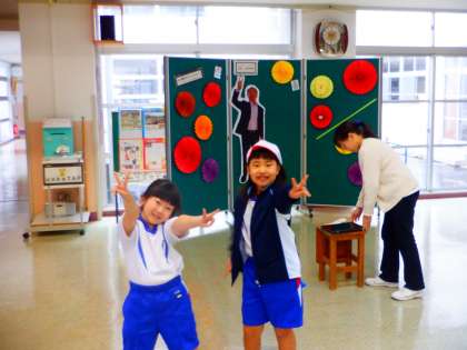フォトスポットの様子です。「せーの」と言うと、「yokaTAP」とポーズをとってくれます。