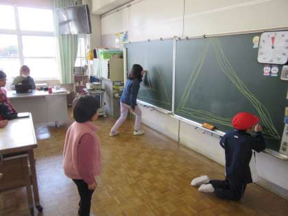 今日はなかよし活動の日です。6年生が中心となって、どの班も楽しそうです。