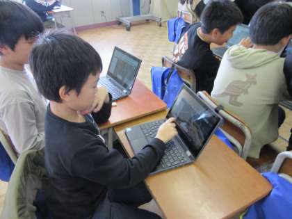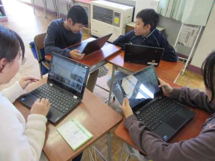 6年生は総合的な学習の時間に、四方地域について調べています。防災、環境等様々な観点から地域を見直しています。水質を計測する方法、学校から海までの距離、学校から避難所までの道のり等、より具体的に考え調べています。