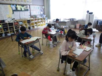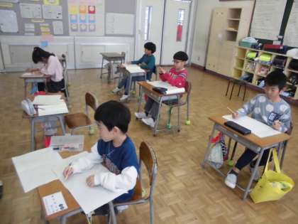 2年生の4時間目は、国語の学習でした。おもちゃの作り方についての説明文を書いていました。読む人に分かりやすく伝わるように、段落を意識したりイラストを入れたりするなど、工夫して書いていました。