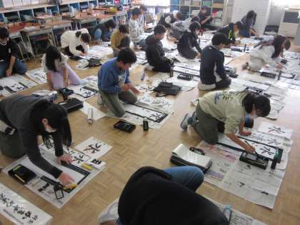 5年生は書き初め大会の練習をしていました。力強い字になるよう、手本をよく見ながら集中して書いています。