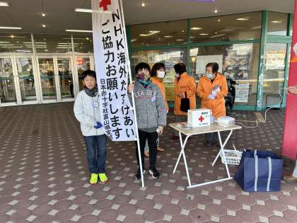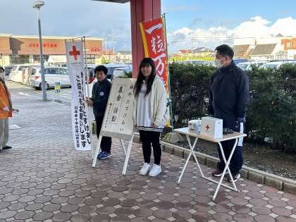 6年生の子供たちが、四方赤十字奉仕団の活動の一つ、北の森ショッピングセンターでのNHK海外たすけあい募金活動に参加しました。途中雪がちらつく寒い中でしたが、子供たちは通る人たちに声をかけ、協力してくださった方々に感謝の言葉を伝えていました。