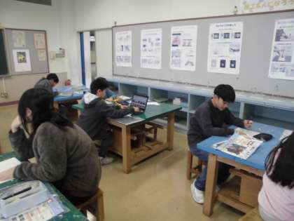 12月17日(火)5年生 今日の授業風景(版画の下書き)