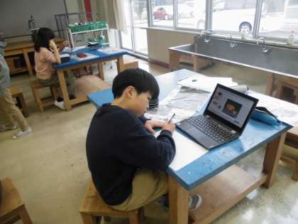 5年生の5・6時間目は、図工の学習でした。5年生は、一版多色刷りに挑戦します。彫刻刀で彫る線を意識して紙に下書きをしていました。海の生き物や物語の登場人物等、テーマは自由ですが、イメージを大切にしながら下書きを進めていました。