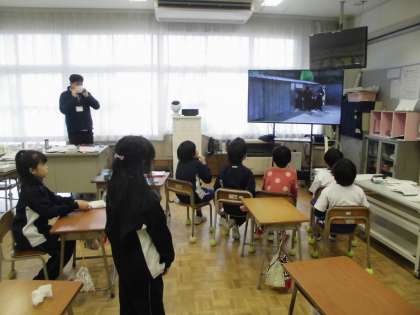 2年生の2時間目は、国語の学習でした。お話づくりの清書をした後、みんなで「反対の意味の言葉」について、動画を見ながら楽しく学習していました。
