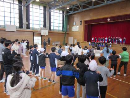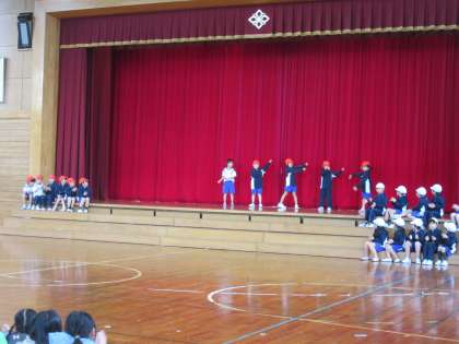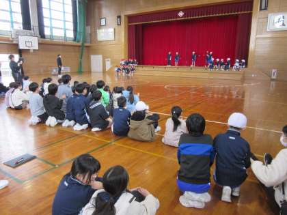 1・2年生は体育科で学習したダンスの発表会をしました。たくさんの手拍子の中、子供たちは元気いっぱい自分たちで考えたダンスを披露してくれました。最後に「みんなで踊りましょう」のかけ声とともに、観客もみんな立ち上がり、一緒にダンスを楽しみました。アンコールの声も聞かれ、1・2年生の子供たちも、観客も楽しい時間となりました。