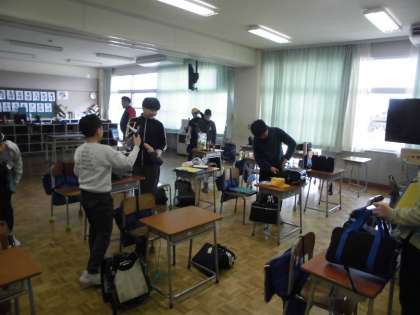 6年生は6時間目に、教室や廊下のロッカーの片付けをしていました。たくさんの荷物をどのようにして持ち帰るか、友達と相談しながら進めていました。