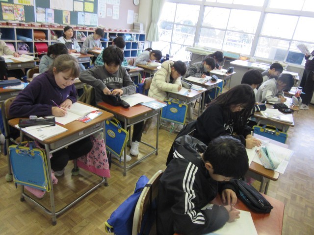 4年生は算数の学習をしていました。これまで学習した計算の練習問題では、どの子も集中して問題に向かっていました。3学期もいろいろな問題に挑戦していこうという意気込みが感じられました。