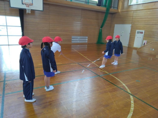 1・2年生の3時間目は、体育の学習でした。今日は、こおり鬼と8の字跳びをしました。こおり鬼では、鬼に捕まらないように上手く交わして逃げたり捕まった仲間を助けたりしました。8の字跳びでは、回っている縄にタイミングを合わせて跳んだり、縄を大きく回して跳びやすくしたりしていました。寒い体育館でしたが、子供たちは元気いっぱいに体を動かしていました。