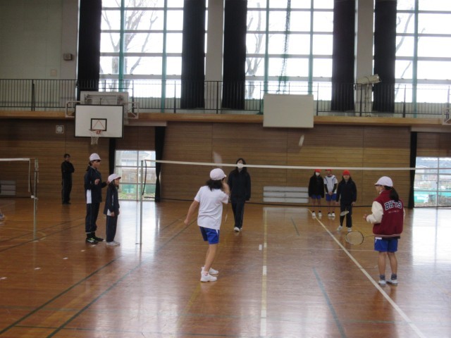 1月14日(火)5年生 今日の授業風景(バドミントン)