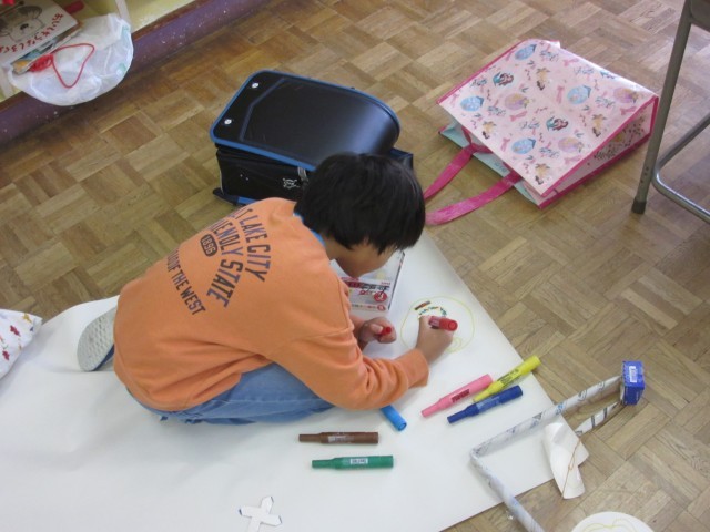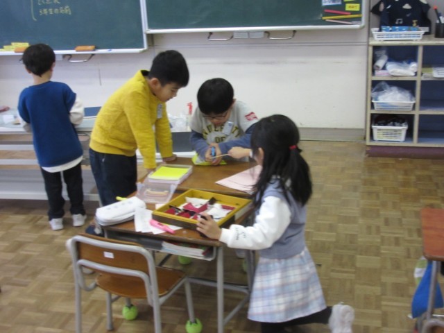 2年生は生活科でおもちゃづくりをしていました。来週3年生を招待しておもちゃランドを開きます。振り返りを生かして、より3年生に楽しんでもらえるよう工夫をしています。