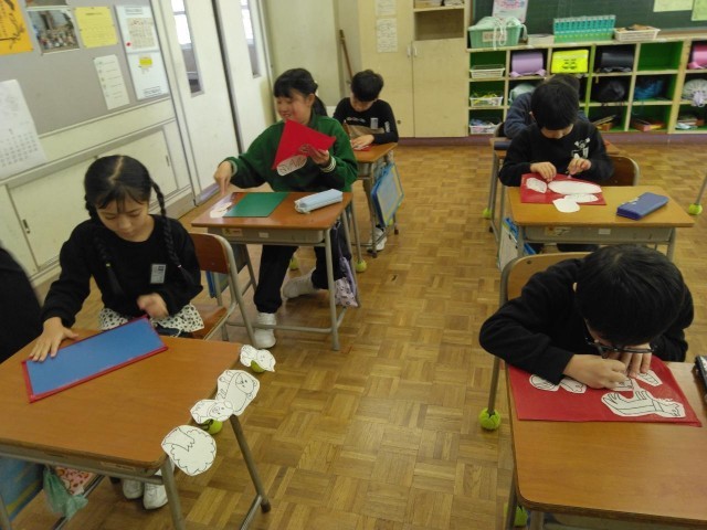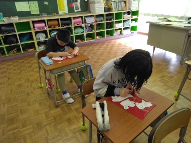 3年生の2時間目は、図工の学習でした。ゴム板に下書きをしていました。次の時間、初めて彫刻刀を使います。