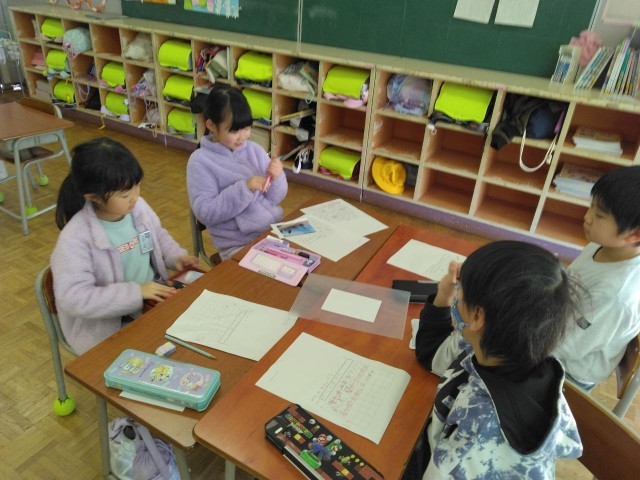 1年生の5時間目は、国語の学習でした。春夏秋冬をテーマに1年生の活動を振り返っています。入学して、平仮名・片仮名・漢字を覚えた1年生。文章を書く力も高まっています。早く課題を終えると、友達を手伝う姿がたくさん見られました。