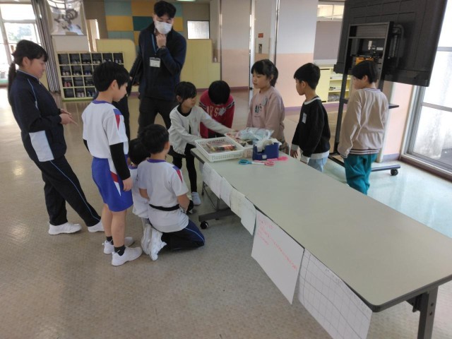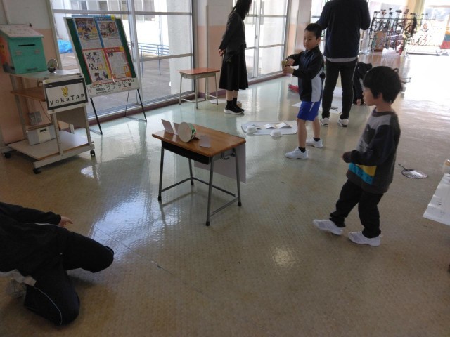 2年生の4時間目は、生活科の学習でした。今日は、今取り組んでいる「おもちゃランド」に3年生を招待し、おもちゃや遊び場についてアドバイスをもらいました。実際に自分たちがつくったおもちゃで遊んでもらうと、嬉しい反面、難しいと感じることもあったようで、今度1年生を招待するために、何ができるかを考える予定です。