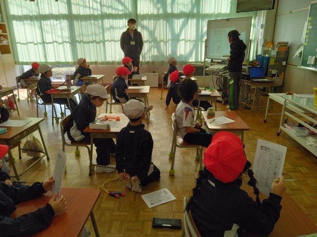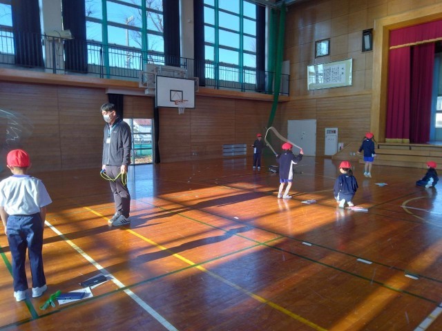 1・2年生の2時間目は、体育の学習でした。初めになわとびカードの使い方の説明を聞いた後、体育館に行ってなわとびをしました。目標をもってがんばる1・2年生です。