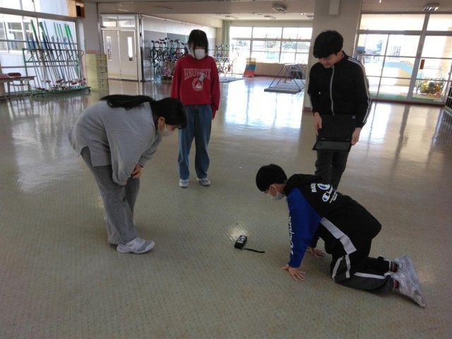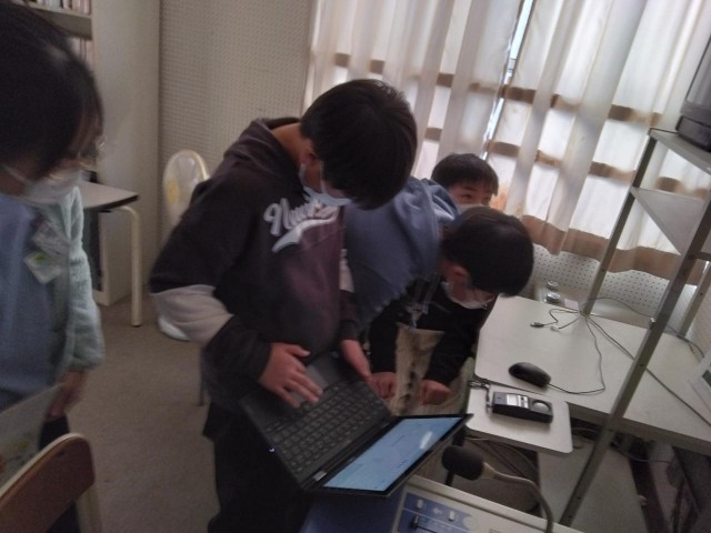 6年生の5時間目は、家庭科の学習でした。冬を明るく暖かく過ごすために、今日は「採光」について学習しました。学校にも必要な明るさの規準があることを知り、実際はどうなのか、照度計を使って調べました。「放送室やコンピュータ室が暗かった」「教室は十分明るい」等、グループの友達と確認する子供たちでした。