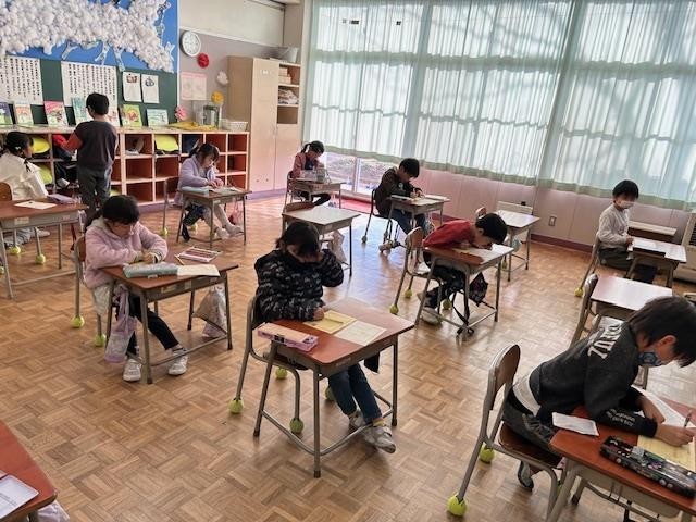 1年生は日頃お世話になっている地域の方への感謝の手紙を書いていました。下書きを見ながら清書をした後、周りの模様に色を塗って喜んでもらえる手紙になるよう、丁寧に活動していました。