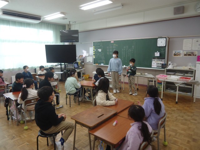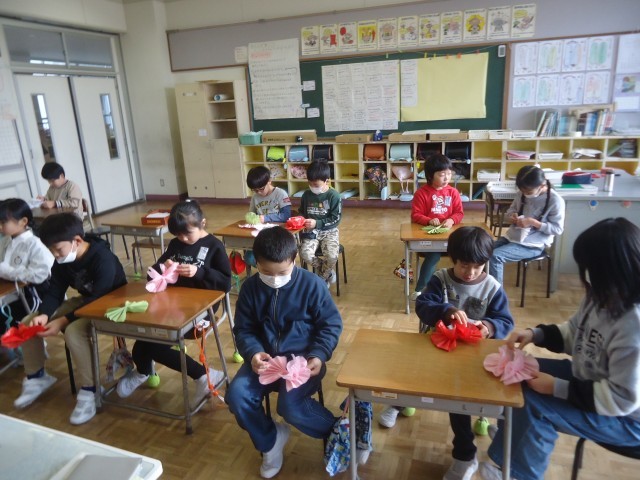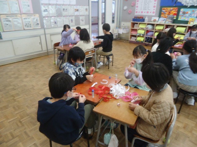 1月27日(月)3年生 今日の授業風景(1・2年生と飾りづくり)