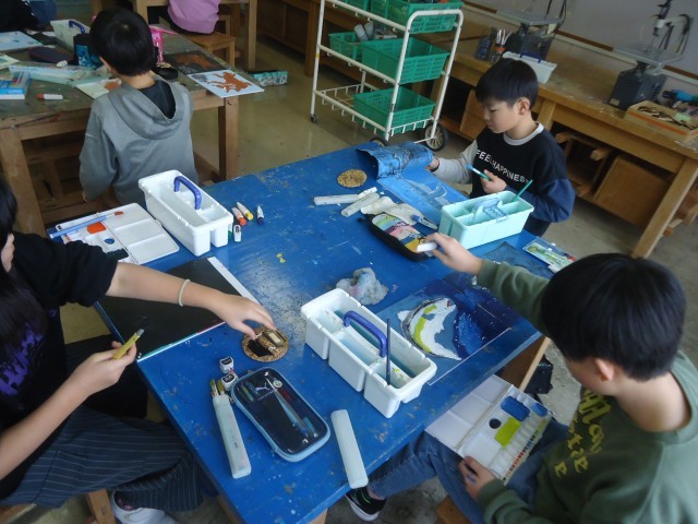 5年生の5・6時間目は、図工の学習でした。先週に引き続き、版画の印刷をしてました。5年生が挑戦しているのは、多色刷りなので、色を重ねることができます。今日は、強調したい部分やものの境目等を意識しながら印刷していました。