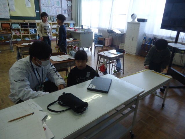 2年生の2時間目は、算数の学習でした。「1mより長く3mより短いものを見付けよう」という目当てをもち、3mの紙テープを用いて様々な長さを調べました。友達と協力して測る姿がたくさん見られました。