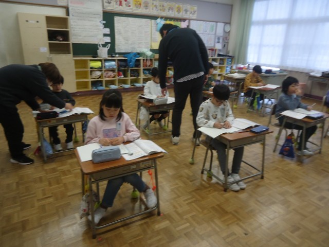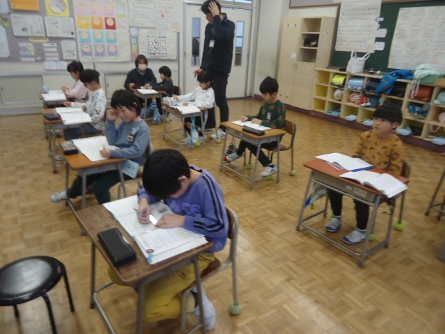 2年生の4時間目は、算数の学習でした。テープ図を見て「全体」か「部分」かを判断したり、それらを求める式を確認したりしていました。とても集中して取り組む2年生です。