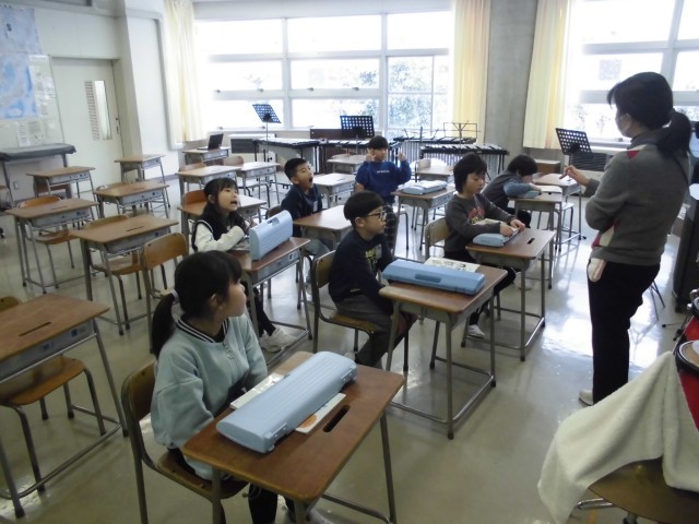 音楽科で「こぐまの2月」の合奏をしました。