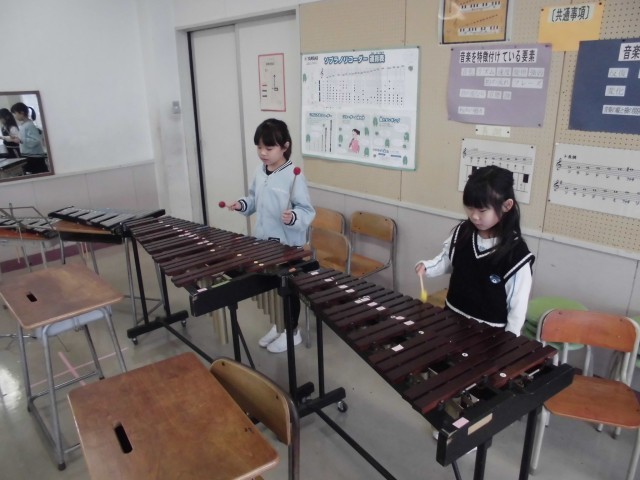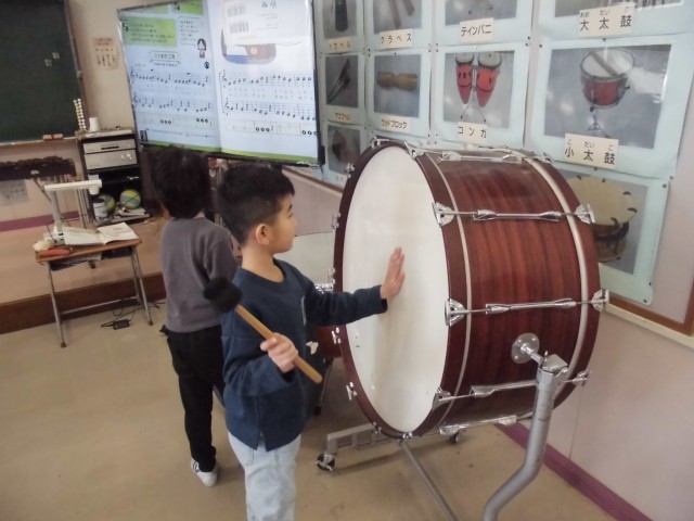 鍵盤ハーモニカ、木琴、大太鼓など、互いの音をよく聞いて取り組みました。