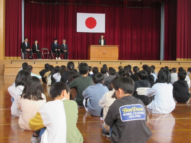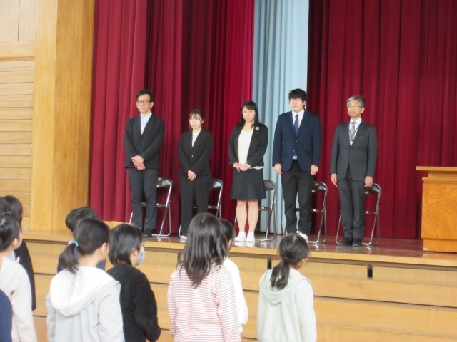 今年度四方小学校に来られた教職員の方々の着任式を行いました。子供たちは「どんな先生かな」とワクワクしながら話を聞いていました。早く名前を覚えて、たくさん一緒に勉強したり遊んだり話をしたり・・・楽しみです。