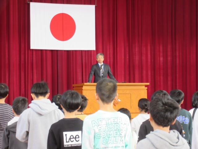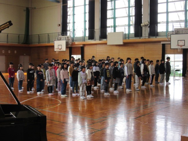 校長先生から「チャレンジ」と「挨拶」について話をされました。子供たちは真剣な表情で話を聞いていました。また、新しい担任の先生の発表にはみんなドキドキしていました。最後に元気な校歌の歌声が体育館に響き、気持ちのよい新年度の始まりを感じました。