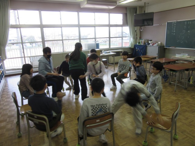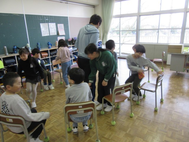4年生は友達や先生のことをもっとよく知るためのゲームをしていました。「先生の名前覚えた人」「イチゴが好きな人」等の質問をして、ぼくも!私も!と思ったら席を移動します。楽しみながらお互いのことをもっとよく知ることができました。