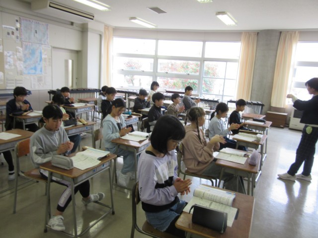 5年生は音楽科で合奏をします。今日は打楽器のリズムを手拍子で確認したり、担当楽器を決めたりしました。今年も音楽を楽しみたいですね。