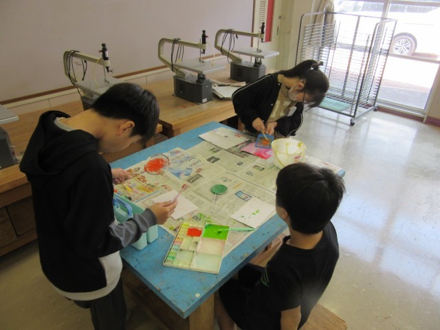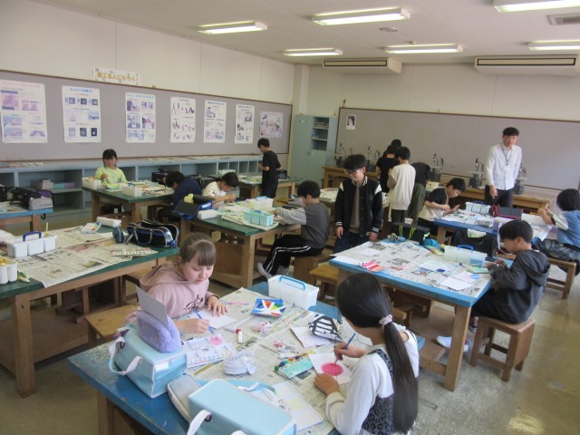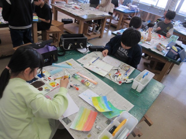 5年生は図画工作科で自分の「心の模様」を描く活動をしていました。5年生になったどきどきやわくわく、がんばりたい気持ちや不安な気持ち等、色や模様、塗り方の工夫で表していました。