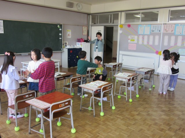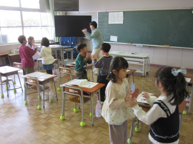 4月21日(月)1年生 今日の授業風景(ペアで手遊び歌)