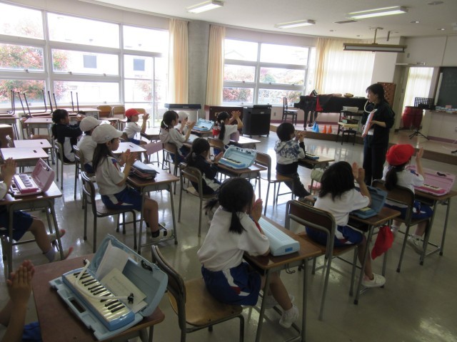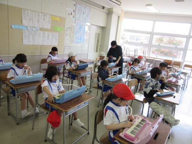 5月9日(金)2年生 今日の授業風景(鍵盤ハーモニカ)