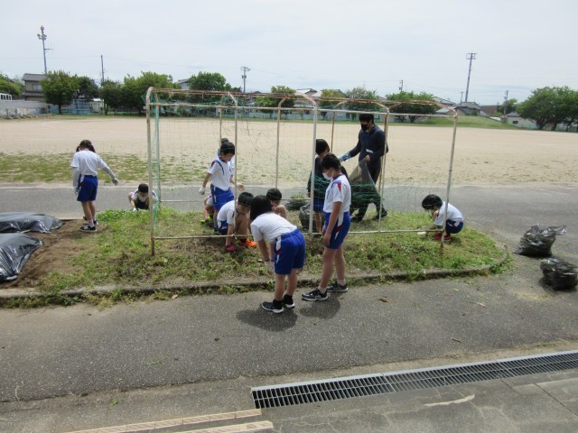 4年生は畑の草むしりをしていました。きれいになった畑にこの後ヘチマを植えます。大きく成長してくれるように、雑草をしっかり取り除いていました。