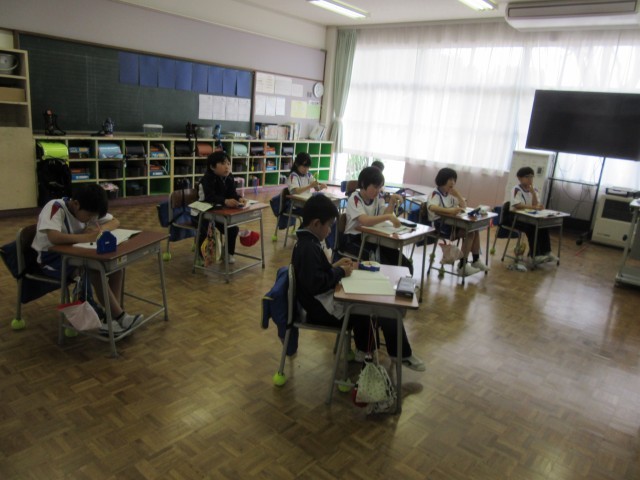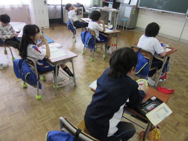 3年生は算数科で時間と時刻の学習をしていました。実際に時計を操作しながら、○分前の時刻、○分後の時刻等を考えていました。
