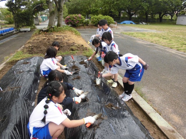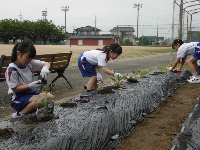 5月12日(月)2年生 野菜の苗を植えたよ!