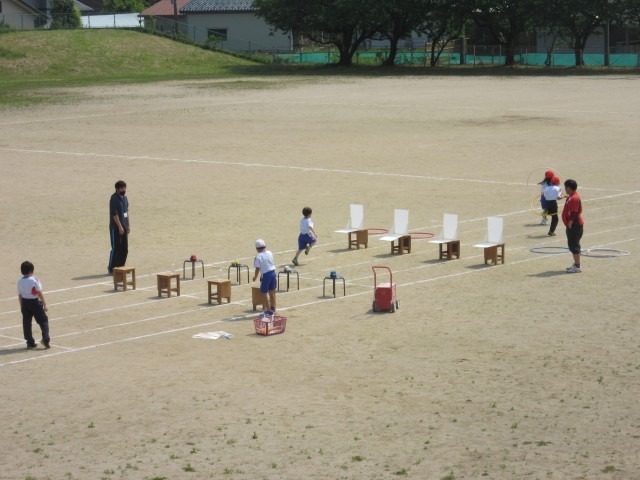3、4年生は運動会の加技走の練習をしていました。ペットボトル、フラフープ等色々な道具を使って競技をします。