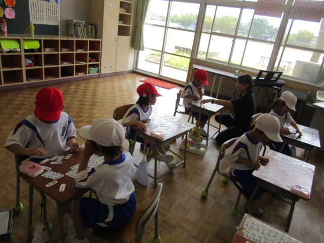 5月15日(木)1年生 今日の授業風景(足し算カード)