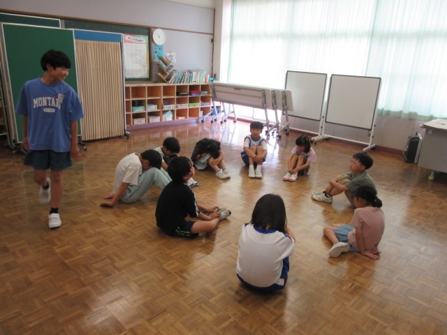 一緒に運動会もがんばったなかよし班の友達、以前より仲良くなって楽しく活動していました。天気のよかったので、外で活動する班もありました。