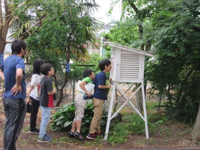 4年生は理科で気温の変化を調べています。1時間ごとに百葉箱で気温を調べます。「どんどん寒くなっているな」等、気付いたことをつぶやきながら表にまとめていました。