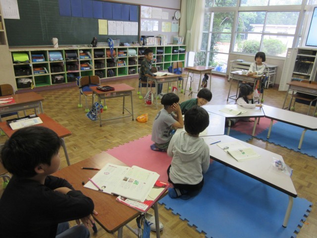 3年生は国語科で文章の中心になることがどこに書かれているかを考えていました。友達と教科書を見合ったり、大型モニターで文章を確認することで、文章の中から言いたいことをしっかり見付けることができました。