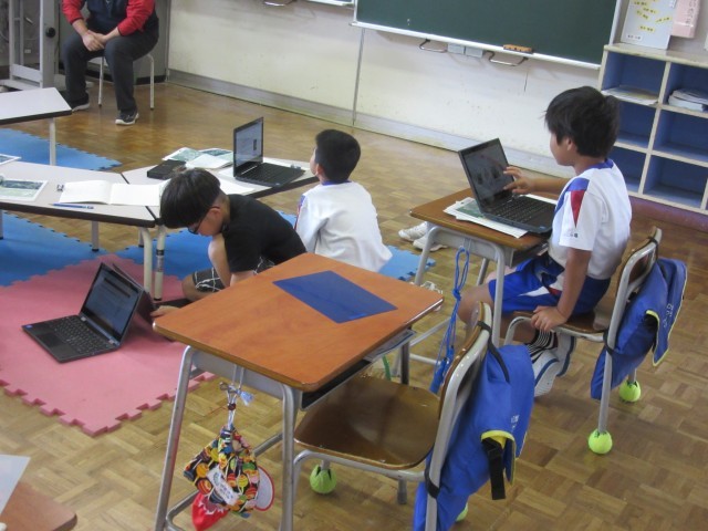 3年生は社会科の学習をしていました。教科書を資料を読む中で分からない言葉が出てきたら、すぐにパソコンを使って調べます。知りたいことを速く調べられるようになってきました。